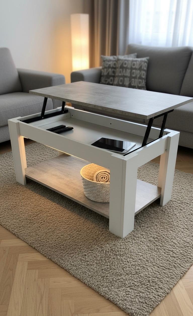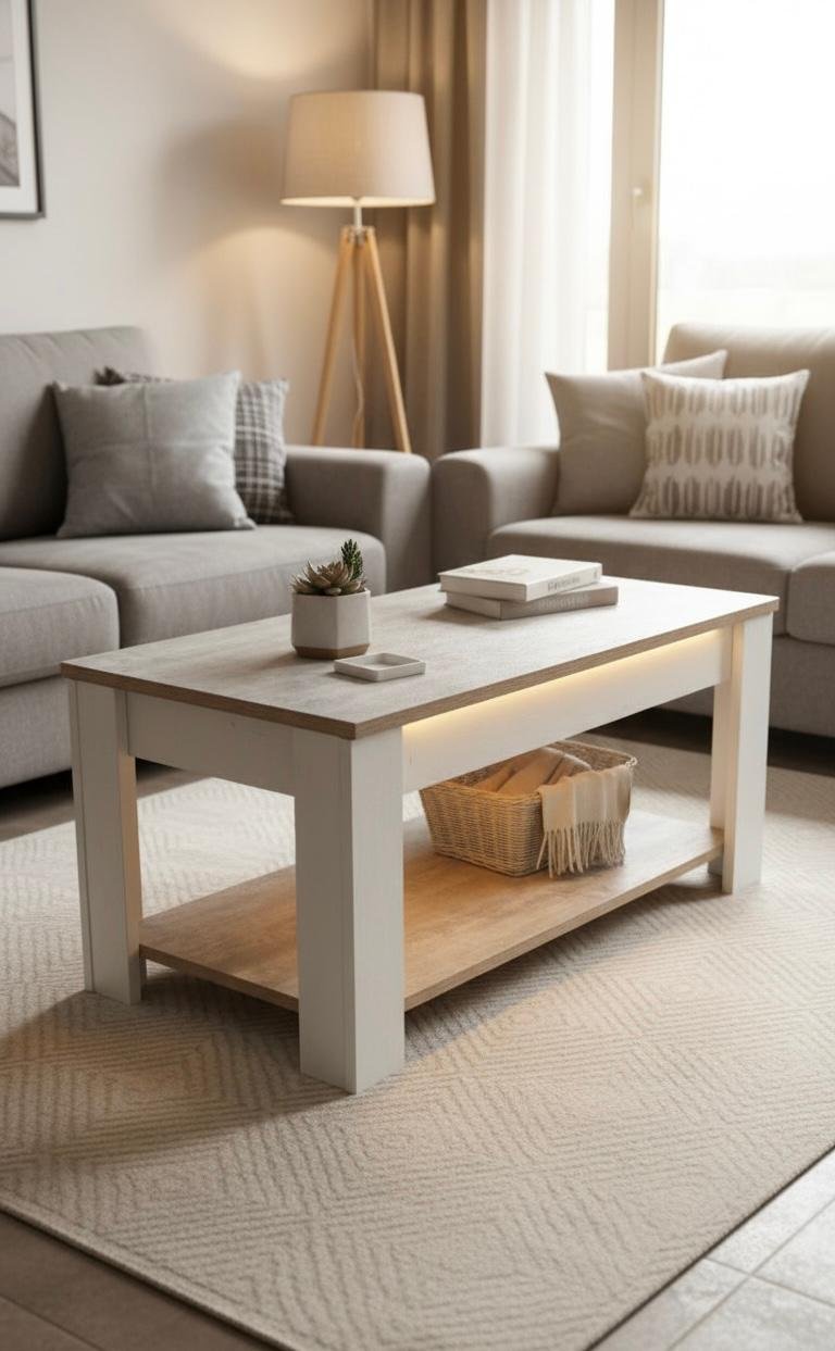 Mesa ratona elevable diseñada para brindar funcionalidad, orden y diseño en espacios de estar contemporáneos. Su sistema de tapa elevable permite adaptar la mesa a distintos usos cotidianos —trabajo, comidas informales o momentos de relax— incorporando un espacio de guardado oculto que mantiene el ambiente limpio y organizado.